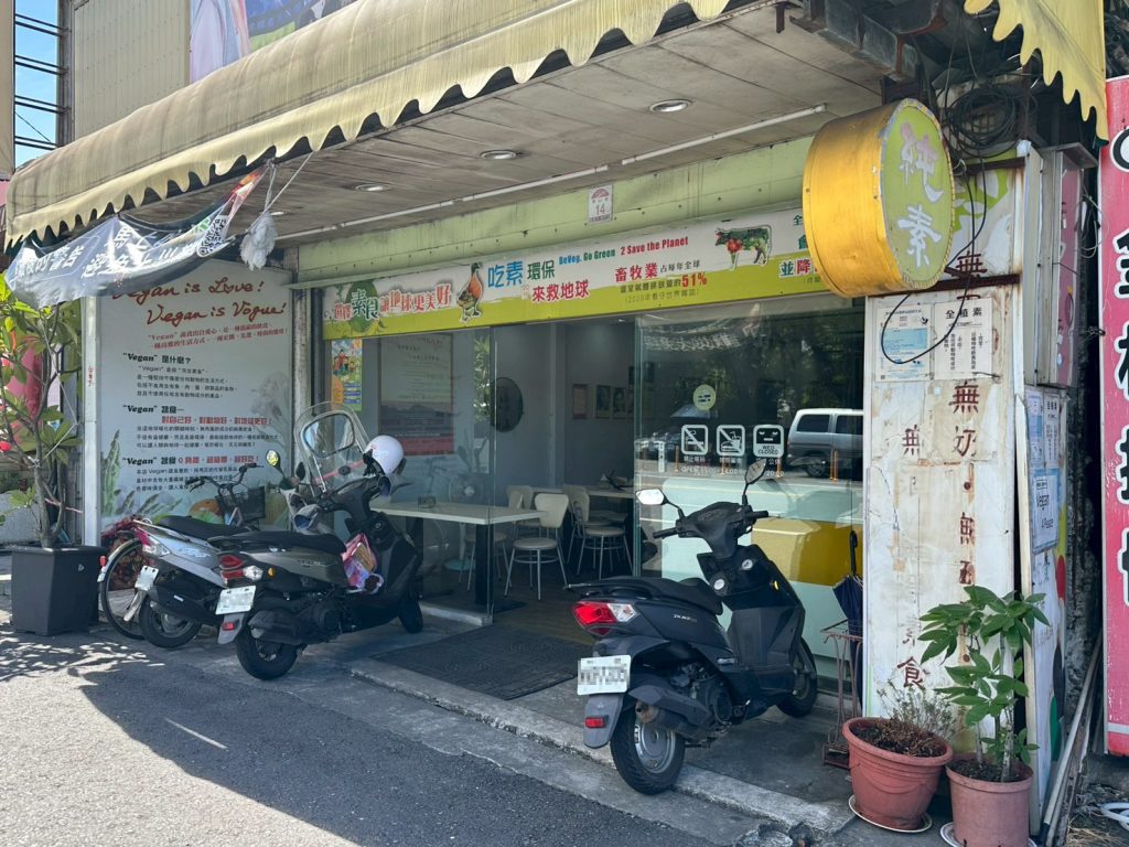 愛家素食的店面都會有吃素救地球的一些標語,這也算是他們集團的風格,店家前面如果沒有停車的話是可以停的喔。